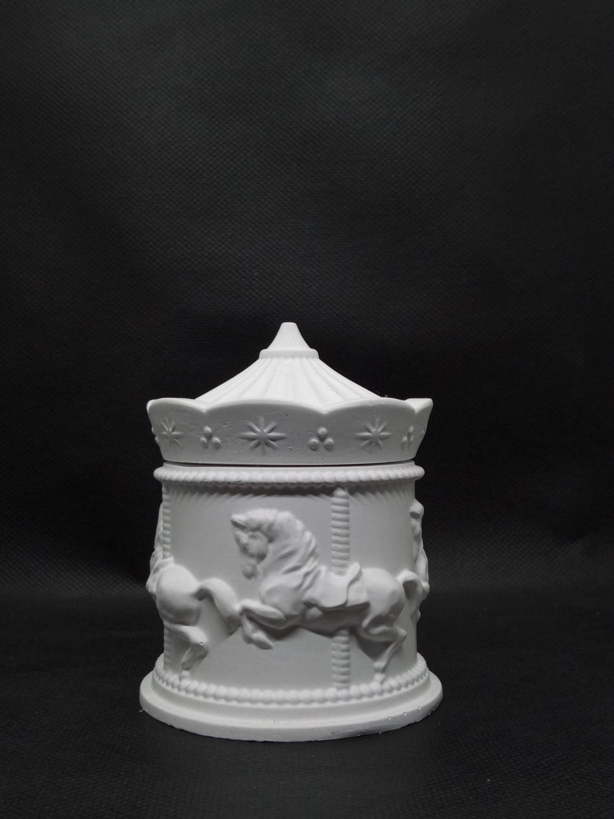 Explora la belleza clásica con nuestro alhajero en forma de carrusel, N°11 delicadamente moldeado en yeso. Este joyero artesanal, sin pintar, ofrece una base en blanco perfecta para que lo personalices a tu gusto. Su diseño detallado, inspirado en los encantadores carruseles de antaño, presenta elegantes relieves y formas suaves que resaltan su encanto vintage. Con compartimentos ideales para almacenar anillos, pendientes y otras pequeñas joyas, este alhajero es tanto un práctico organizador como una pieza decorativa que podrás adaptar a tu estilo. Ideal para quienes buscan un toque personal y único en su colección.